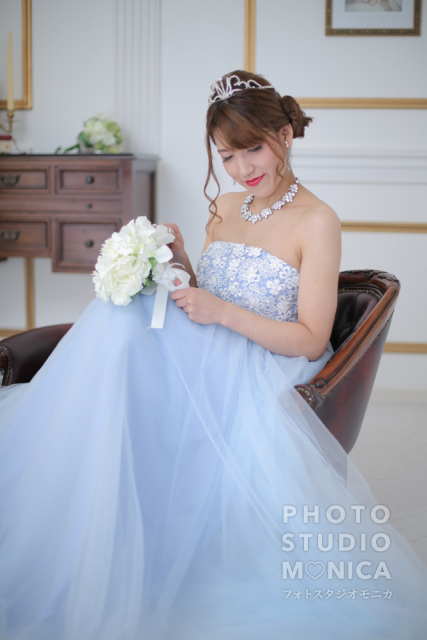 ブルーのカラードレスでドレススタジオ撮影♥︎ 2019.01.14 Plan:ドレス撮影プラン Photographer:カメラマンT はにかんだ笑顔がとてもお美しいこちらのかた……💖 ドレスプランご利用のお客様です💞 青のカラードレス姿は、可愛く美しく✨ とてもお似合いです😊 モニカのご利用ありがとうございました💫🌟 カラードレス